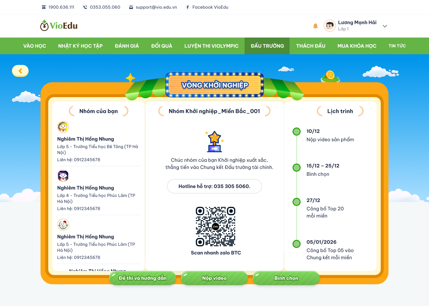 Ngày 25/11, học sinh sau khi đăng nhập tài khoản và truy cập Đấu trường tài chính, tiếp tục truy cập “Tham dự vòng Khởi nghiệp” để xem thông tin nhóm cũng như các hướng dẫn quan trọng (minh hoạ hình dưới). Danh sách đội thi, bao gồm: