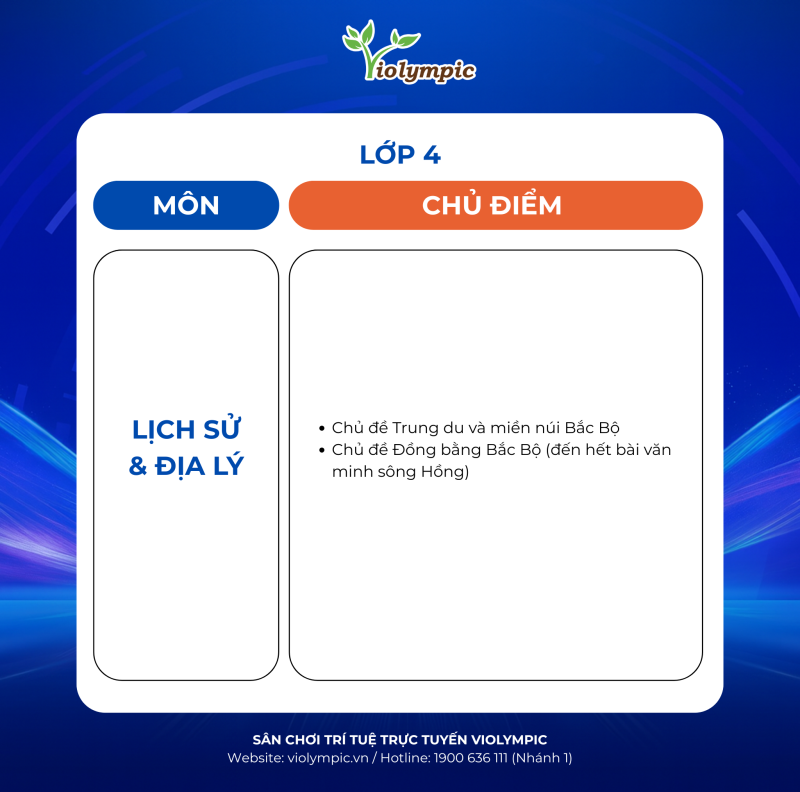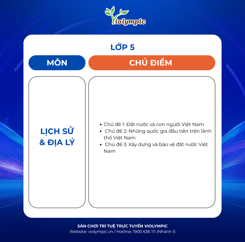 BTC Violympic Quốc gia gửi tới các em học sinh các chủ điểm ôn tập môn Lịch sử & Địa lý vòng thi cấp Trường năm học 2025 – 2026.