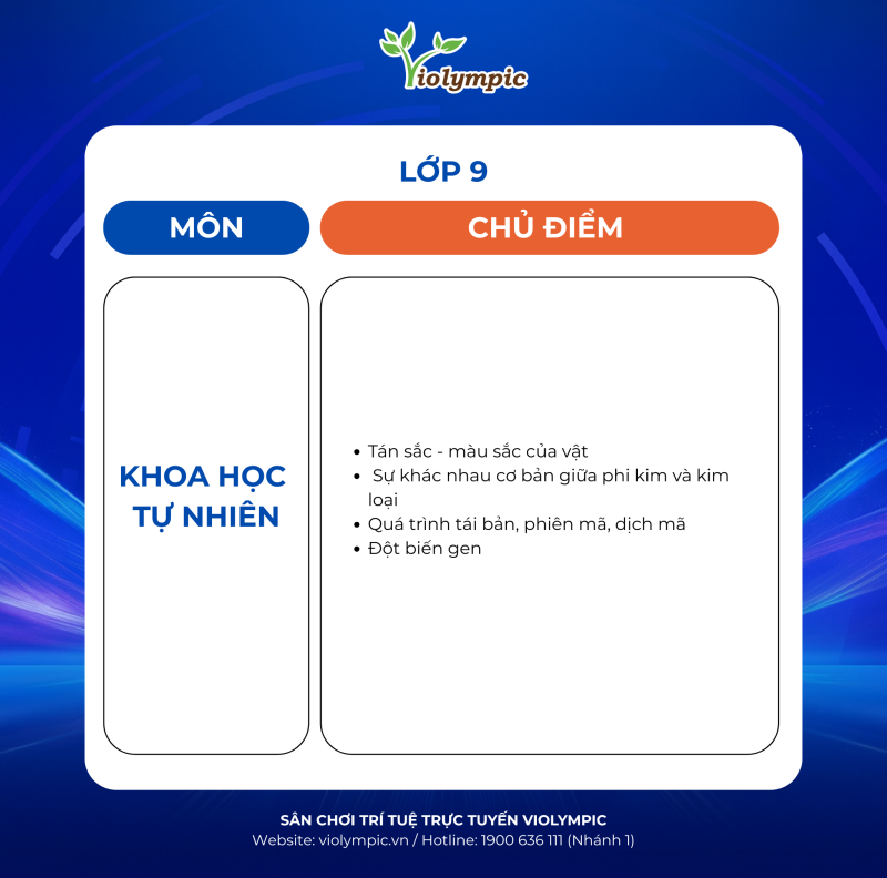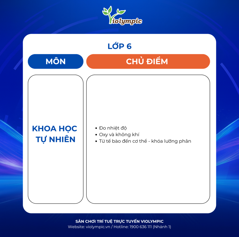 BTC Violympic Quốc gia gửi tới các em học sinh các chủ điểm ôn tập môn Khoa học Tự nhiên vòng thi cấp Trường năm học 2025 – 2026.