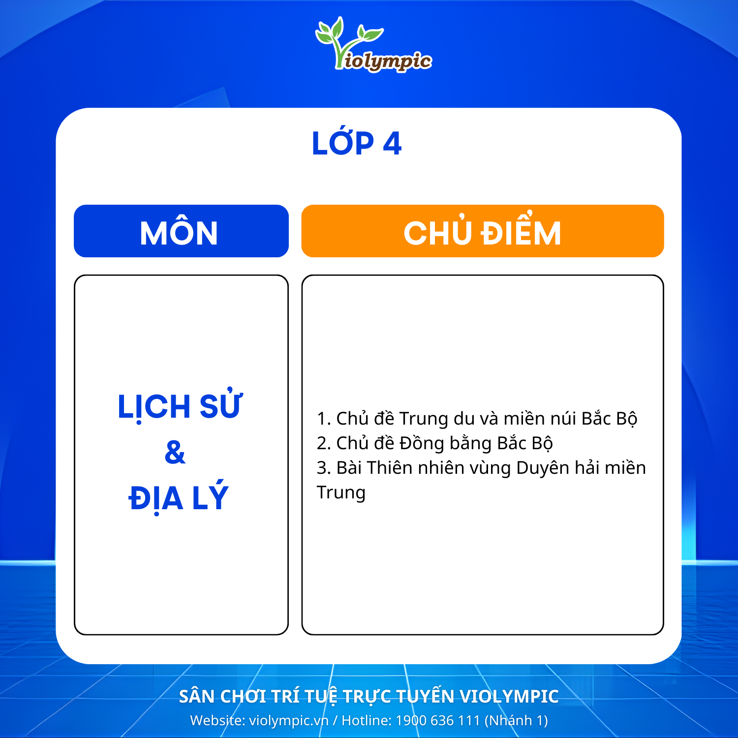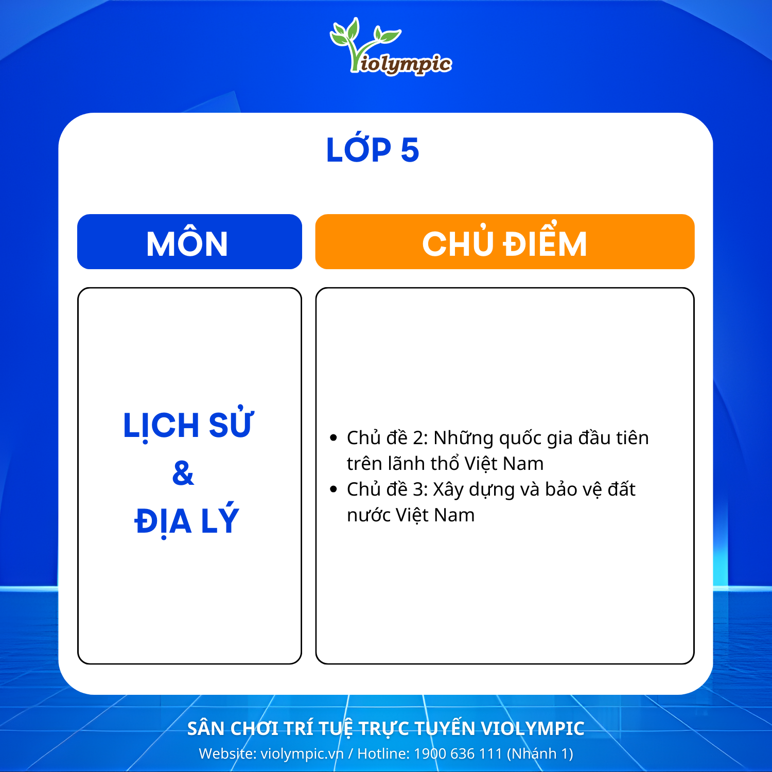 BTC Violympic Quốc gia gửi tới các em học sinh các chủ điểm ôn tập môn Lịch sử & Địa lý vòng thi Cụm Trường năm học 2025 – 2026.