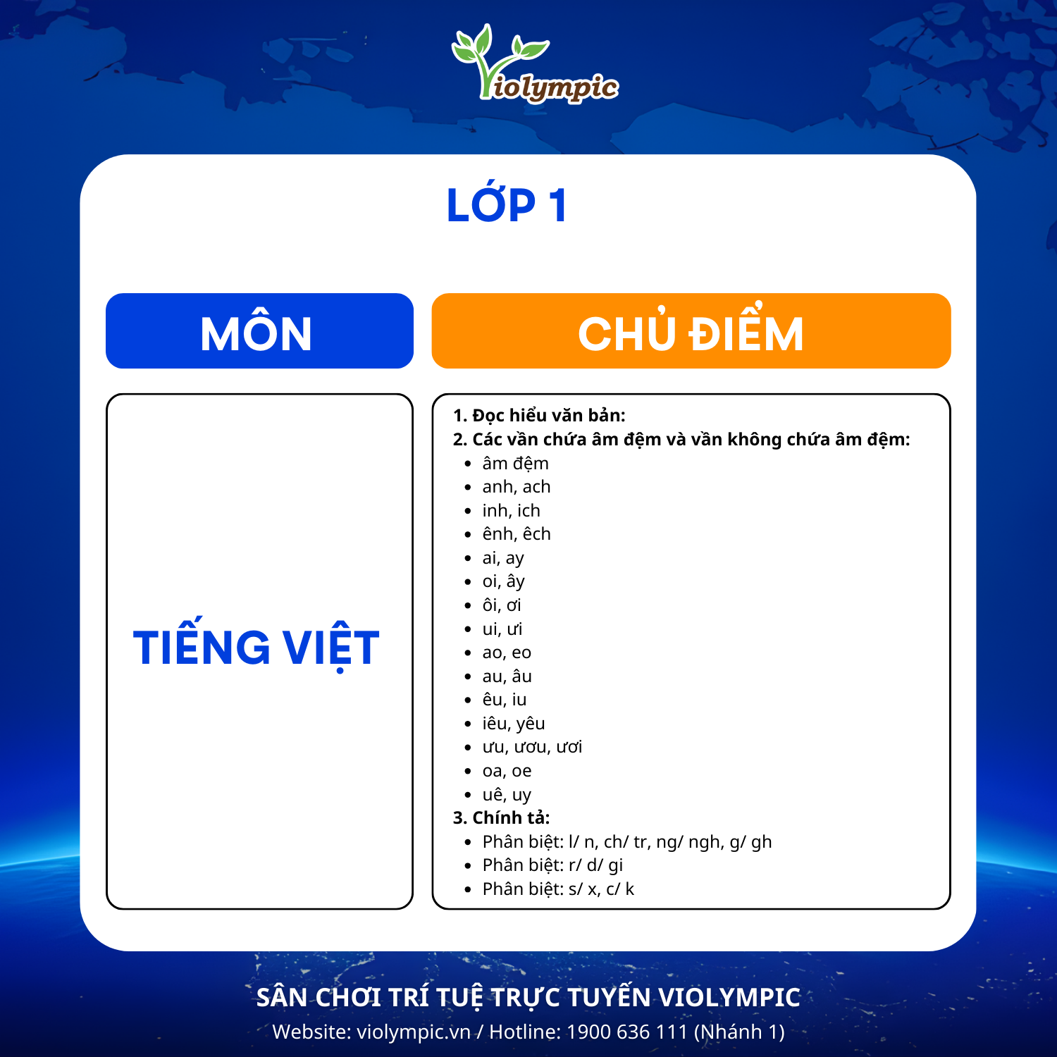 BTC Violympic Quốc gia gửi tới các em học sinh các chủ điểm ôn tập môn Tiếng Việt vòng thi Tỉnh/Thành phố năm học 2025 – 2026.