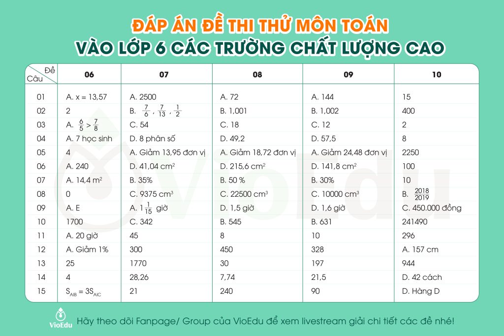 Lời giải chi tiết của từng đề thi sẽ được livestream trên fanpage VioEdu, các bạn chú ý theo dõi để khắc sâu kiến thức hơn nhé.